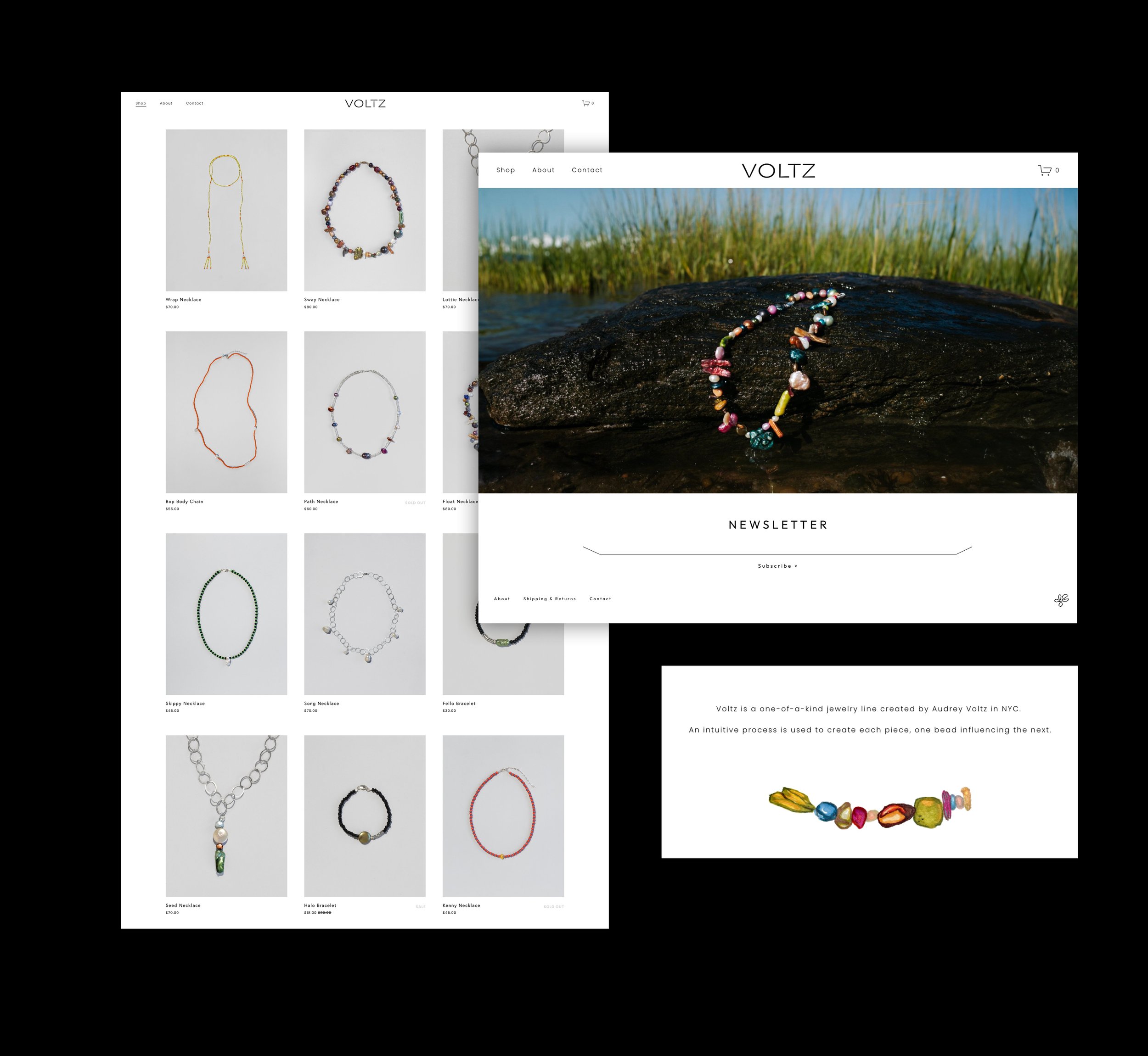 I created The Voltz Shop, a brand featuring bespoke, handcrafted beaded jewelry. The project included the full development of a custom website designed to showcase the unique pieces with an intuitive, user-friendly shopping experience. I also led the branding, establishing a distinct visual identity that reflects the craftsmanship and individuality of the jewelry.