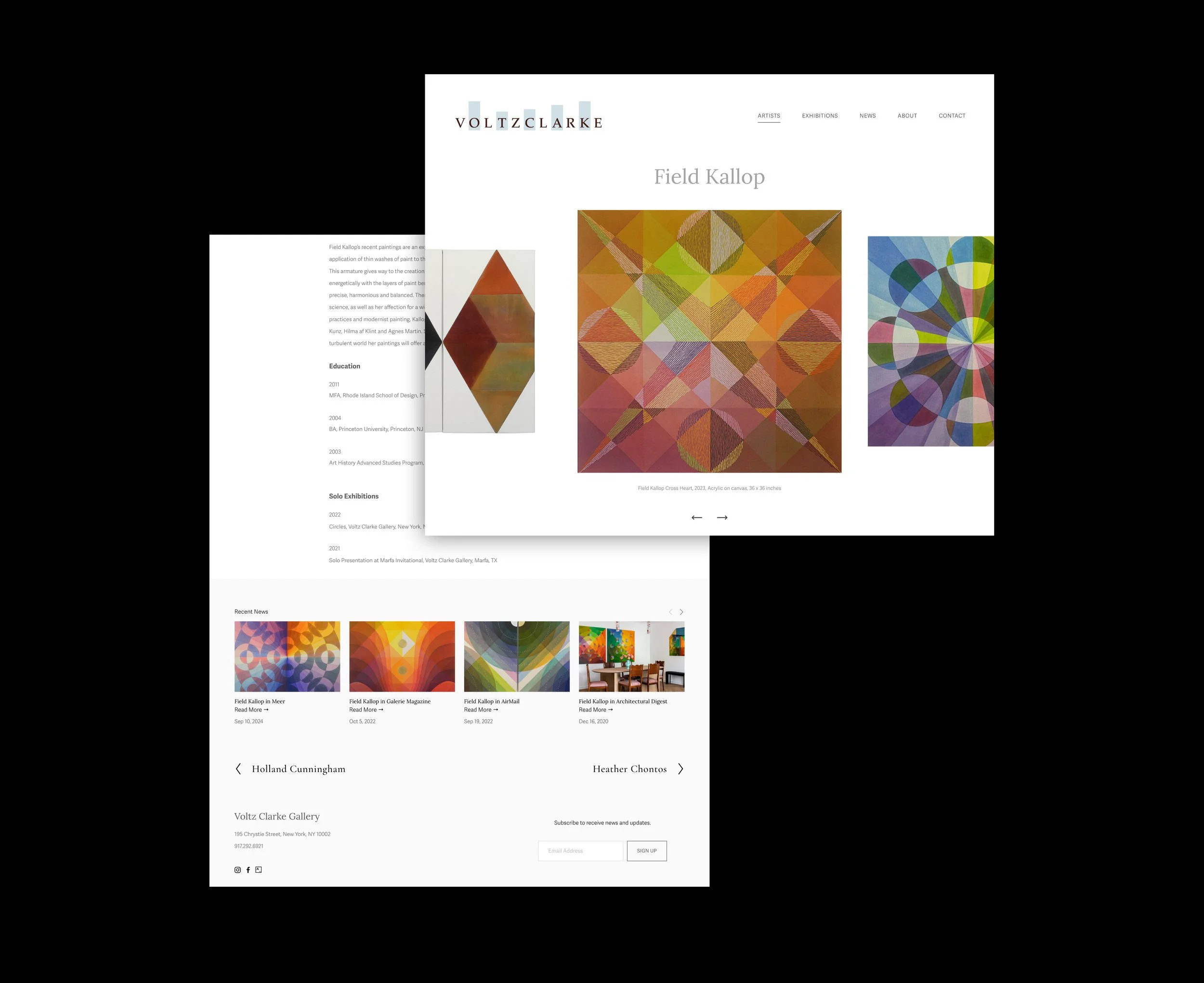Custom Squarespace website developed for Voltz Clarke Gallery with engaging image galleries and responsive artist profiles. The site prioritizes SEO for key artists like Bradley Sabin and Natasha Law, while ensuring easy content management for gallery admins. The result is a sleek, SEO-optimized platform that enhances the gallery's digital presence.